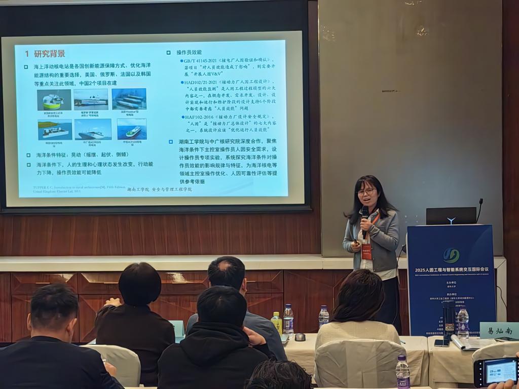 “智能装备系统人因工程”分论坛,易灿南教授分享了我院人因可靠性与安全团队创新性研究成果——“海洋条件下主控室操作员效能研究”,该研究依托best365承担的某核电研究院海上浮动堆重点项目开展,探究了海洋条件对操作员作业绩效的影响及操作员生理、心理特征的变化规律与失误机理,报告内容引起热议,体现了我院在复杂系统人因安全相关领域的研究前沿性与研究积累。
