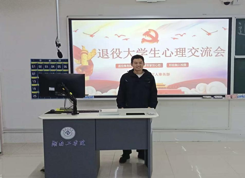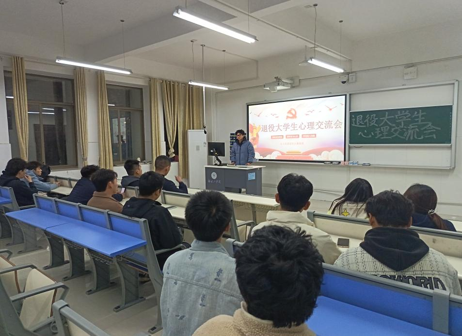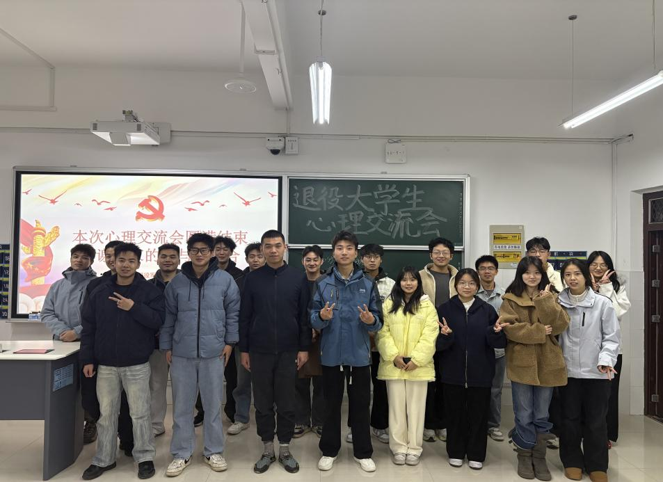 为深入贯彻落实立德树人根本任务,切实做好退役大学生复学后的服务保障工作,帮助其快速适应校园生活、缓解心理压力、明确发展方向。12月4日,安全与管理工程学院退役军人事务部在5307教室精心组织了退役大学生心理交流会。学院各个专业的退役大学生代表齐聚一堂,在坦诚沟通与温暖互动中收获支持、凝聚力量,充分彰显了学院对退役学子群体的精准关怀与全面护航。