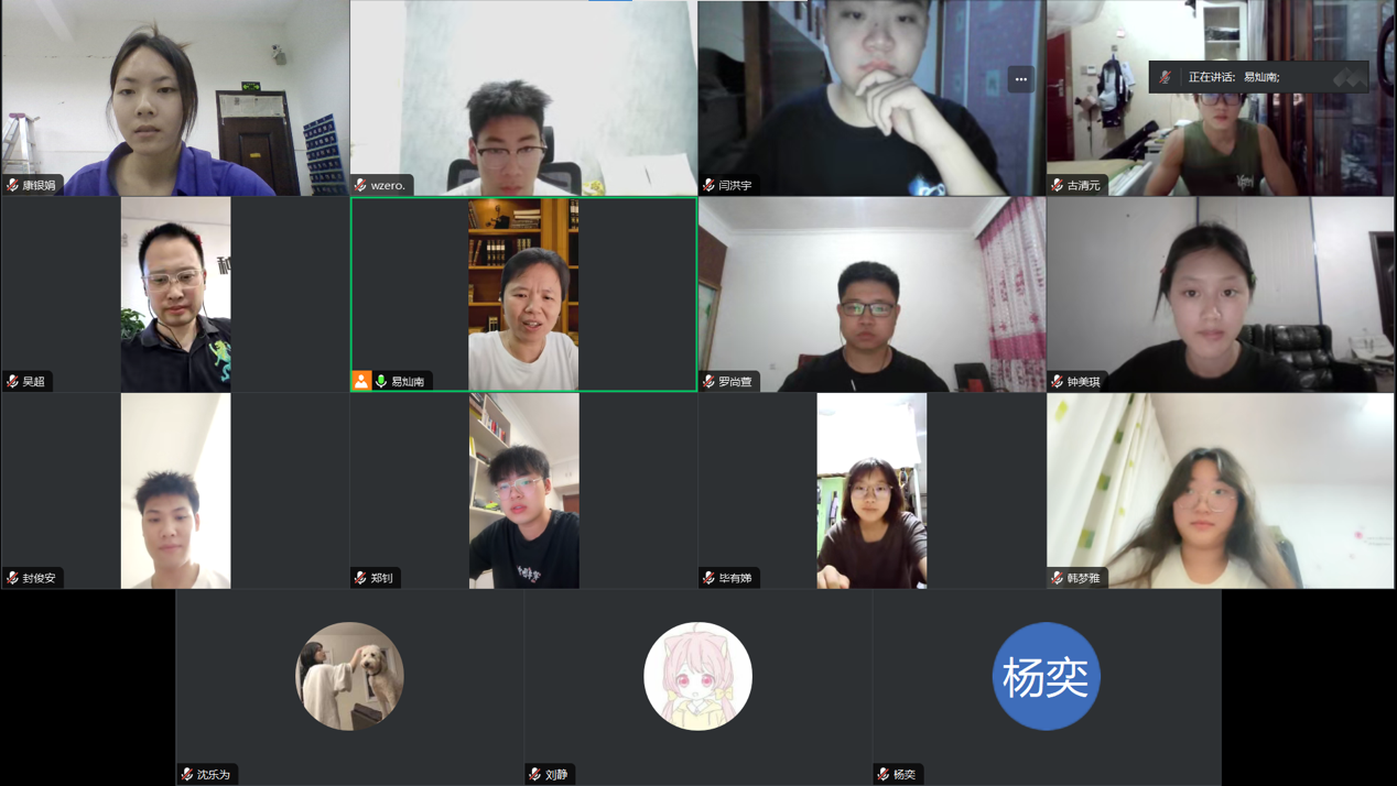 7月26日晚20点,为贯彻落实本科生导师制、增强本科生学术本领,易灿南老师组织开展职业安全与健康大学生科研团队暑假线上学习汇报会,参会人员有吴超老师、大学生科研团队成员。