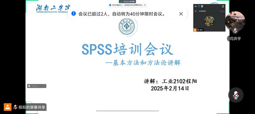 会议中,程阳介绍了SPSS软件的使用技巧、数据预处理、统计分析等基本方法,并且基于实例进行了基本操作。(文/闫洪宇 图/闫洪宇 审核人/一审:易灿南 二审:蒋建军 三审:胡鸿)