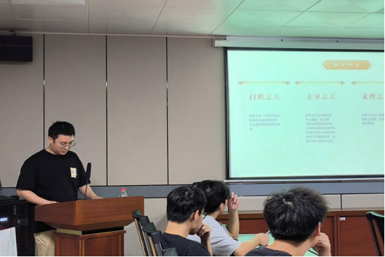 分享会上,胡君捷从天命溯源、儒家之“天”、儒家天命思想的三重境界和人定胜天四个角度,结合历史实际以及当下热议话题进行了关于儒家思想“天命观”的精彩分享。他希望同学们在充分认识自我的前提下,坚持人定胜天的人生态度,不断努力,积极进取,勇敢地肩负起时代赋予的历史重任。