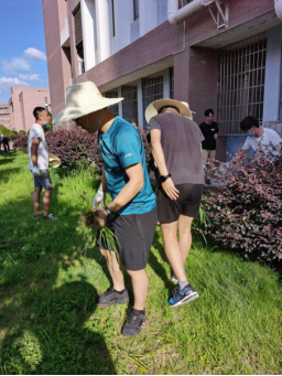 为助力衡阳市创建全国文明城市和国家卫生城市,积极倡导全支部教职工党员做志愿表率、发挥先锋模范作用,以实际行动投身全国文明城市和国家卫生城市创建工作,2020年615日下午4:00-5:30,安全工程教研室党支部党员同志在院长、书记和支部书记的带领下,围绕安全与环境工程学院大楼草坪及墙角开展“拔草”清理活动。