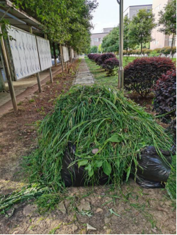 在高温下持续一个半小时的工作中,经过所有党员同志共同的辛勤劳动,安工楼周边区域杂草清除干净,杂草成堆。望着这么喜人的成果,党员同志们即使汗流浃背,腿麻腰痛依然幸福满满。