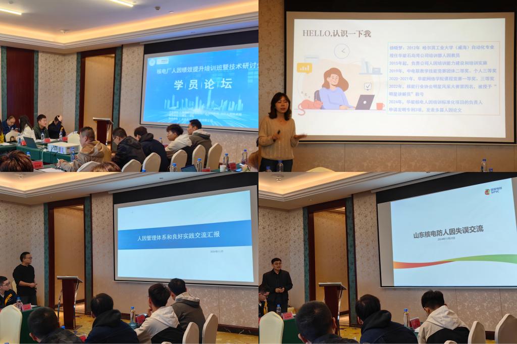 青涛以“核电厂人因失误、人因可靠性分析方法及理论”为题,进行了专题培训,进一步深化了与会人员对人因绩效管理的理解。国家核安全局高级工程师许友龙与华能山东石岛湾核电有限公司的高级工程师郭涛涛分别就“人因事件调查、统计与分析”和“核电厂人因绩效管理、评价与提升”两个主题进行了专业交流与解读。