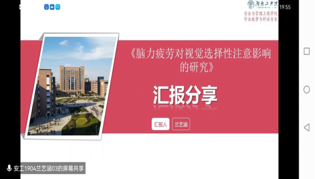 为响应《安全与管理工程学院、人因与安全工程研究院本科生导师制实施办法》并进一步吸引、培养大学生参与创新创业项目,安全与管理工程学院易灿南老师于439:30-21:00组织开展了团队线上文献阅读分享汇报会。易灿南老师、作业疲劳与职业安全研究方向的部分同学和南华大学部分研究生等共25余人参与了本次会议。