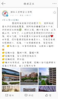 毕业前夕,安工学院征集到了非毕业生为毕业生祝福的语录,在QQ、微博等线上平台进行了公布,为毕业生送去暖心祝福。此外,我院还制作出了毕业生祝福的LED海报并进行播放,使得学院洋溢着欢送气氛。在微信公众号平台上,以推送的方式制作了优秀毕业生特刊,为学院优秀毕业生交出满意答卷。每一期的推出,不仅是对该毕业生的认可,还是对我院学子的鼓舞,能找准自己的方向,为自己的目标而奋斗。我院还精心制作了安工学院党支部毕业生祝福视频和毕业生在校四年活动剪影视频,一首凤凰花开的路口,不经勾起了毕业生们在学校点点滴滴的美好回忆,一条条祝福,一张张美丽瞬间,都承载了学院对毕业生的美好祝愿。