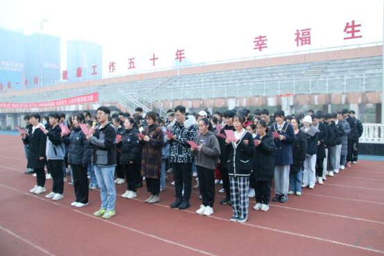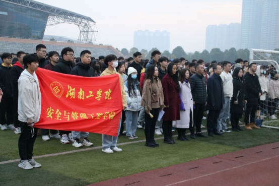 12月20日,安全与管理工程学院于北区田径场举行了“学习贯彻党的十九届六中全会精神”主题升旗仪式。学院党委书记陈健、党委副书记黄宏格、学工办主任兼团委书记傅娜,全体辅导员以及全体学生参加本次升旗仪式。仪式由傅娜主持。