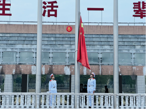 冬日的寒风中,精神抖擞的国旗护卫队队员们护送鲜艳的五星红旗走向升旗台。伴随着庄严的《中华人民共和国国歌》,五星红旗冉冉升起,迎风飘扬。全体在场师生肃立注目,饱含深情地向国旗致以最崇高的敬意。