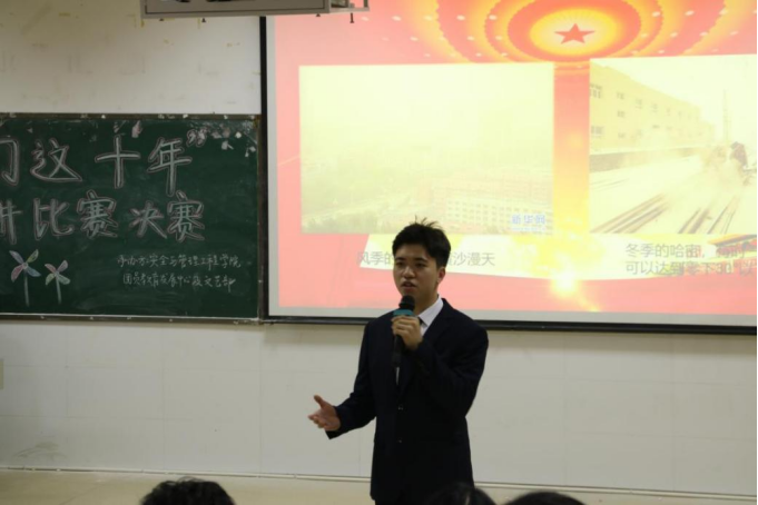 本次演讲比赛以“我们这十年”为主题,经过一系列激烈的角逐,共有十位优秀选手脱颖而出进入本次决赛。十位选手语言规范、表达流畅、声情并茂,用真实、鲜活的事例充分诠释新时代十年的伟大变革和非凡成就。比赛过程中还设置了党的二十大报告知识问答环节。经评委严格评审,符佳好获得一等奖,孙雯彬、马佳睿获得二等奖,顾治韬、秦烺、徐铮获得三等奖,张小妹、宋江滔、丁慧、杜森获得优胜奖。