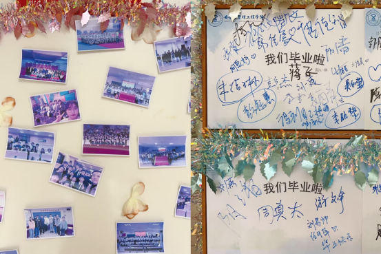为了留住毕业生们在校期间的美好回忆,学院特举办了“迹忆留新”旧照翻拍活动,在安工楼大厅设置专门定制的照片墙和签字板。这项活动吸引了众多毕业生积极参与,他们纷纷拿出自己珍藏的老照片进行翻拍和修复,统一布置在照片墙上,毕业生们用照片或留言的方式来追忆自己的大学时光。