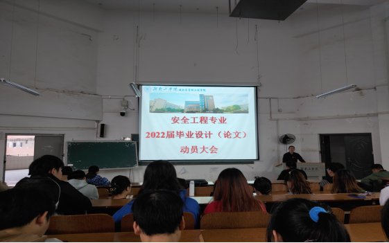 本次动员大会主要介绍了2022届毕业生指导老师安排,并对毕业设计(论文)的选题、进度安排、设计正文要求、答辩、材料归档等进行了详细说明。本届毕业生是安全工程专业认证、本科审核评估的关键一届,毕业设计(论文)的选题应进一步提高工程设计类题目的比重,设计(论文)内容应符合工程认证的要求,要求指导教师加强过程管理。