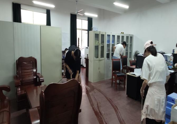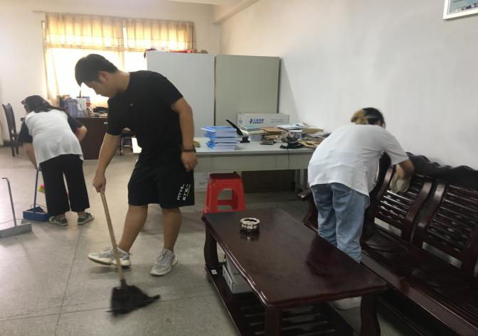 三个学生支部分为三个队伍前往不同专业的办公室,依次向正在辛勤办公的教师们致以最诚挚的祝福后,便开始扫地、拖地、擦桌子、整理桌面书籍并分类捆好等一系列活动。