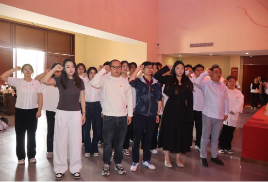 李前奔领誓,全体党员面向党旗庄严宣誓,重温入党初心。