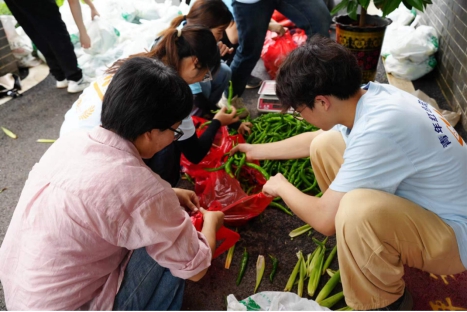 6月是振兴村的辣椒、香瓜、玉米丰收的时节,持续数日的绵绵细雨让农户担心成熟的果蔬烂在地里头的忧愁无比厚重。为此,best365中国官方网站社会实践队开展了产地直播采摘带货和社区团购直达等多种助销模式,短短半天就帮助农户销售了1000来斤玉米、300来斤辣椒等,丰富了社区市民的“菜篮子”,又助力振兴村的农户鼓起了“钱袋子”。