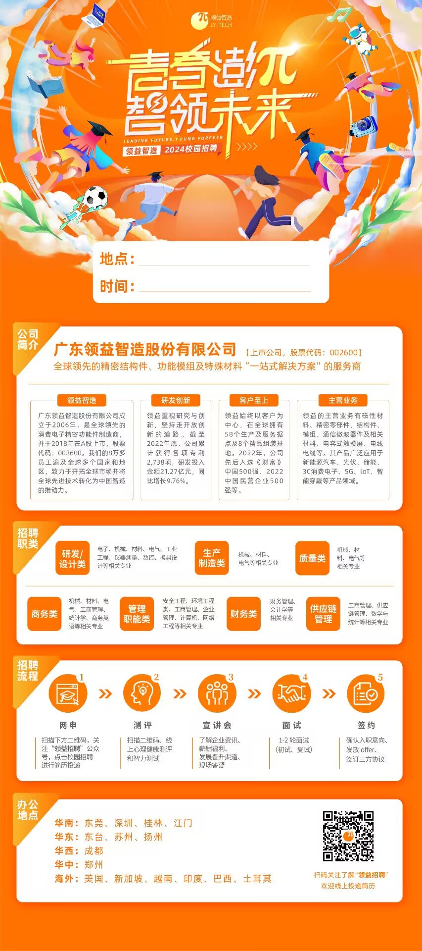 广东领益智造股份有限公司2024届校园招聘开始啦! 招聘岗位: 工程管培生 研发管培生 产品开发管培生、 检测管培生 生产管理管培生 设备管理管培生 专业要求: 材料类、理工科 福利待遇: 本科:年薪9万~12万; 福利优厚,五险一金 系统化培训,免费食宿 联系人&方式 欧江夏18027577348 简历投递邮箱: ou.jiang.xia@lsinvst.com