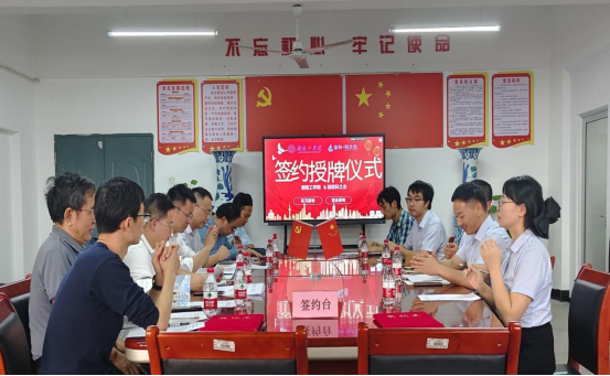 湖南科之杰新材料有限公司技服主管夏永忠、办公室主任张笑平、研发工程师颜琼,材料科学与工程学院副院长黄建平、教学科研办主任周学忠、辅导员王安东、无机非金属材料工程专业教师侯伟和袁龙华参加仪式并进行交流研讨。