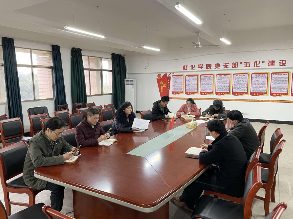 2021年3月10日下午,材化学院党委理论中心组在1401会议室召开了党史学习专题会议。会议由党委书记刘湘欣主持,党委成员、三办主任及各党支部书记参加了专题学习。