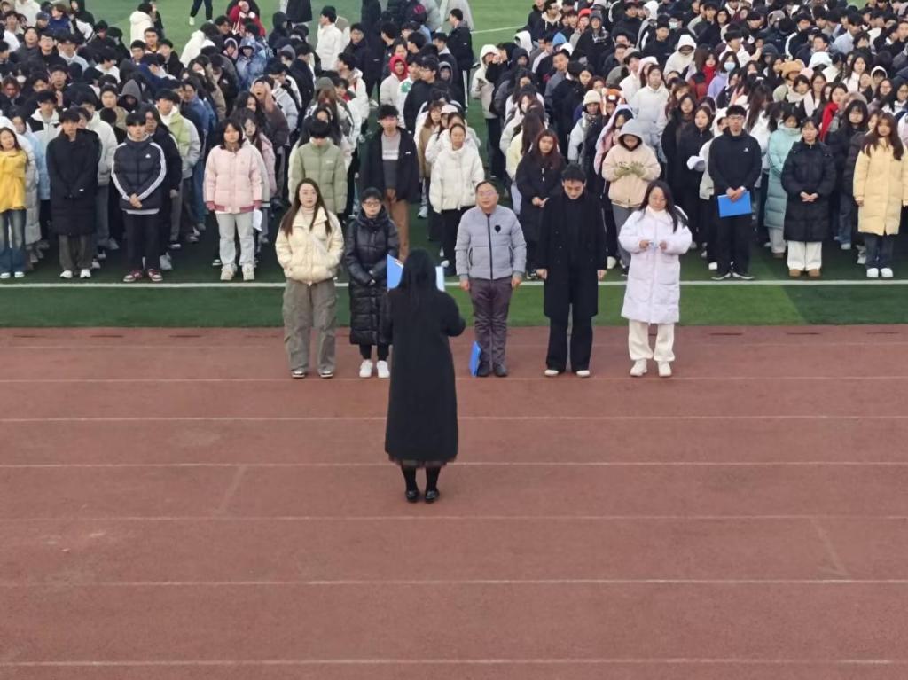 12月16日清晨,材料科学与工程学院北操场举行 “缅怀英烈荣光,书写自强篇章” 升旗仪式学院党委副书记李前奔、全体辅导员、班主任代表出席活动,全体在校同学参加活动,学工办副主任罗心阳主持。