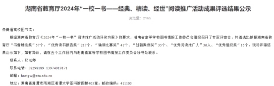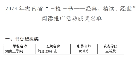 近日,依据湖南省教育厅《2024年“一校一书”阅读推广活动评奖方案》,湖南省高等学校图书情报工作委员会组织专家评审会,遴选出多个奖项,其中“书香班级奖”57个。材料科学与工程学院能源2303班脱颖而出,荣获省“书香班级奖”三等奖。
