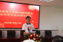 曹执令致辞,代表学校向90级硅酸盐工艺校友们表示热烈的欢迎,向校友们一直以来对母校建设发展的关心和支持表示衷心的感谢。