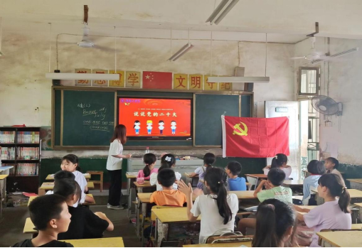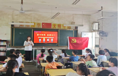 在党的102岁生日来临之际,为全面深入学习贯彻党的二十大精神,实施全环境立德树人,引导广大青少年儿童从小听党话、颂党恩、跟党走,让红色基因、革命薪火代代传承。best365中国官方网站材料科学与工程学院赴衡阳市珠晖区茶山坳镇“护绿水青山,助乡村振兴”暑期社会实践团于6月30日上午来到茶山小学开展“童心向党,喜迎七一”宣讲活动。