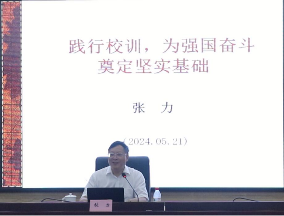 作为深耕教育沃土的老校长,张力教授饱含深情地向大家介绍了学校合并、新建、升本、合格评估等历程,深度阐释了校训的内涵,以及内在关系,结合习近平总书记今年五四青年节前夕的重要讲话精神,勉励师生党员自觉肩负起时代赋予的伟大责任与历史使命。他以深厚的人文素养臻于完美地展现了教育“大先生”的情怀与担当,诠释了个人理想追求融入党和国家教育事业之中的生动实践。