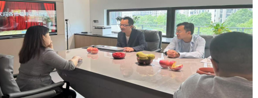 湘能绿建负责人范刚重点介绍了公司在绿色建材、节能环保领域的技术布局与发展规划,刘赢时详细询问了前期学院博士在校企科研项目合作上的进展情况,进一步了解企业对人才需求、科研合作等方面的建议,并详细介绍了我院的学科建设、人才培养优势及科研创新方向,就深入推进博士教授企业行进行充分沟通。