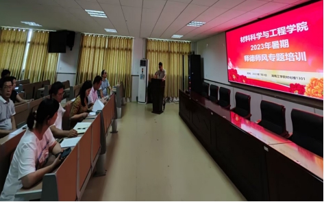 为进一步加强师德师风建设,不断提高全体教职工的思想政治素质和师德水平73下午材料科学与工程学院在1301报告厅师德师风培训会议,本次培训会由院党委书记刘赢时主持,全体教职工参加。