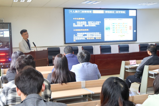 李理教授作了题为《跨界·集群·重构——应用型大学的专业群、课程群及教学策略》首场报告。他以“课程群与课程建设”为主题,从政策背景、专业建设、课程建设、教学策略等方面,结合自己的研究、思考与教学实践,精辟地分析了专业群、专业、课程群的概念,阐明了三者之间的关联,梳理、总结了专业建设和课程建设的思路与原则,创造性地提出了课程教学的混合策略、“一三一”要诀。李理教授精彩的报告引发了老师们浓厚的兴趣,大家一致认为李理教授报告内容精深,思想精辟,对专业建设、课程建设以及课堂教学极富启发。
