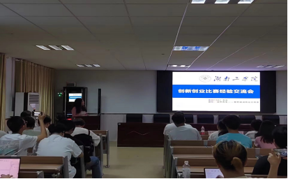 随后,由第九届中国国际互联网+”大学生创新创业大赛铜奖获得者——《绿水清醛——无氯苯甲醛的引领者》团队负责人熊湘同学,给同学们示范了竞赛路演全过程,并介绍决赛心得体会。接着其他获奖团队成员也纷纷上台分享了他们从选题、实践、材料准备、打磨参赛答辩等整个过程的经验教训。