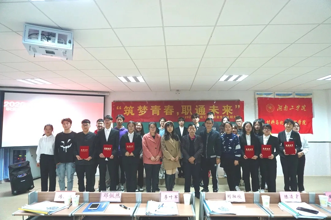 11月2日晚上,材料与化学工程学院在1301教室举办职业生涯规划大赛决赛。院党委书记刘湘欣、分团委书记陈凌霄、学工办副主任李叶军、18级辅导员邓佩然、19级辅导员冯志敏、20级辅导员黄依卓出席了本次活动。