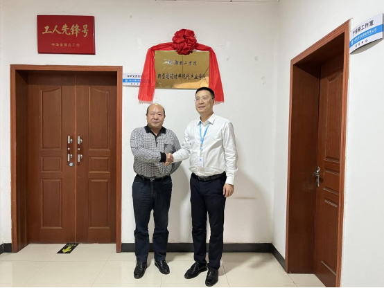 刘升学一行参加best365中国官方网站新型建筑现代产业学院挂牌仪式,刘升学和中建西部建设湖南有限公司副总经理、总工程师蒋震共同揭牌。