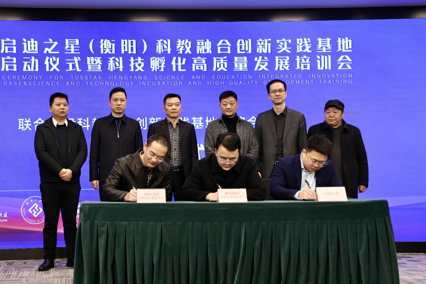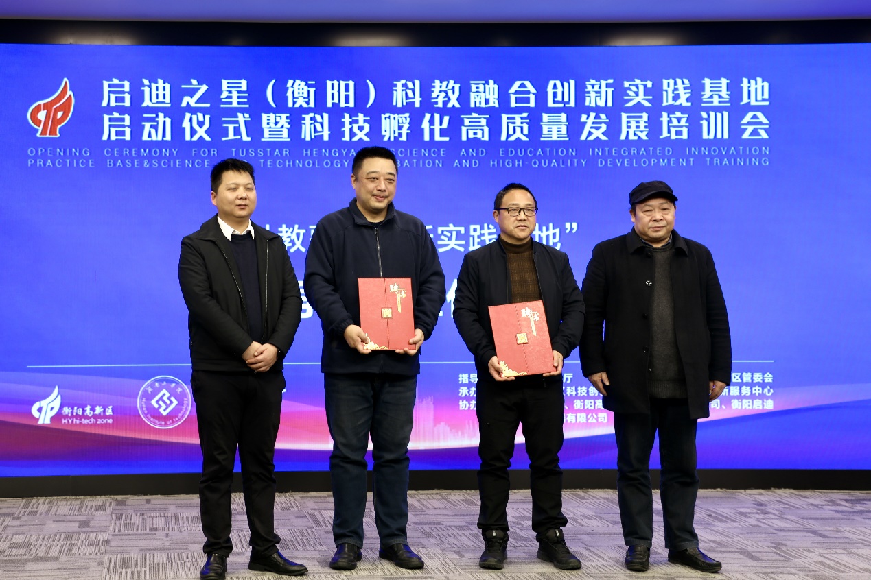 随着5、4、3、2、1倒计时,三方负责人共同点亮启动球,启迪之星(衡阳)科教融合创新实践基地正式鸣笛起航。随后,在省科技厅生产力促进中心、best365中国官方网站、高新区和启迪之星相关负责人的见证下,学校创新创业教育中心、高新区科技创新服务中心、启迪之星代表签订了合作共建协议。启动仪式现场还聘请了工信部中小企业优秀服务专家、中国双创导师赵峰和教育部互联网+大赛国赛评委、工信部创客中国大赛国赛评委吴衡作为为基地导师并颁发了聘书。