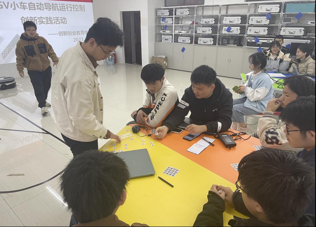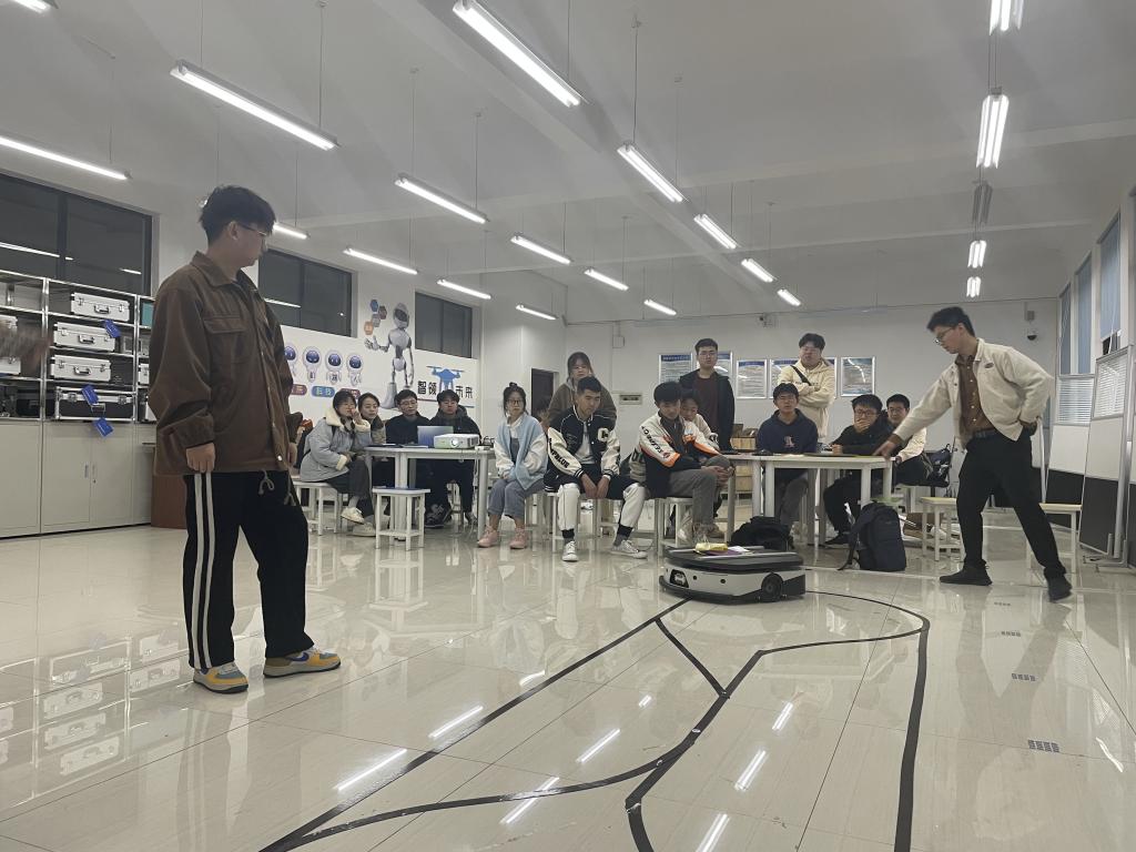 本次培训诚邀元创兴科技有限公司工程师孙争博以项目制教学的方式对AGV小车的自动导航运行控制相关内容进行了技术培训。孙老师不仅为同学们详细而生动地讲解了AGV自动导引运输小车的工作原理与相关工程应用案例,并一对一耐对项目团队运行调试AGV小车的自动导航、自动避障、故障分析与日常维护等实践操作进行了精心的辅导。