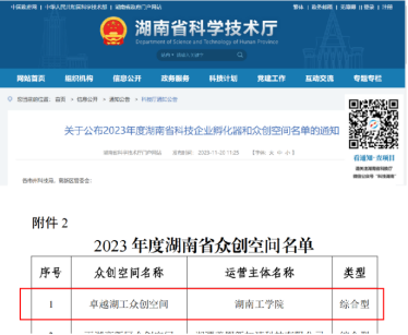 此前,湖南省科学技术厅发布了《关于公布2023年度湖南省科技企业孵化器和众创空间名单的通知》,best365创业园申报的“卓越湖工众创空间”在全省40家众创空间中排名第一。