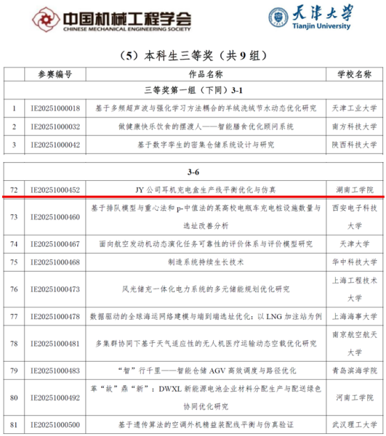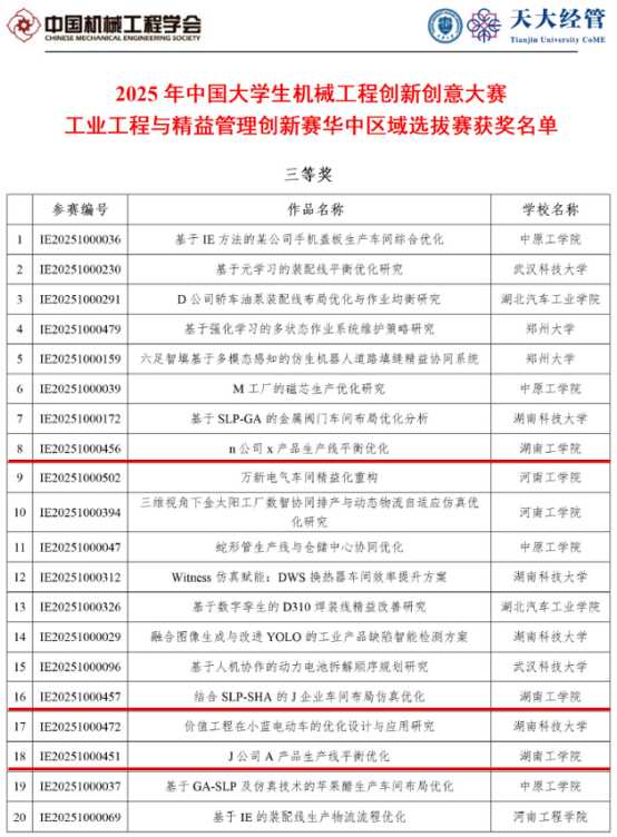 近日,2025年中国大学生机械工程创新创意大赛工业工程与精益管理创新赛全国总决赛(以下简称全国总决赛)在天津大学圆满落幕。best365大学生团队首次参赛,从校赛中推出5个团队,共24名学生进入华中区域赛。团队凭借出色表现,从众多参赛队伍中脱颖而出,一举斩获国家三等奖1项,华中区域赛三等奖3项。