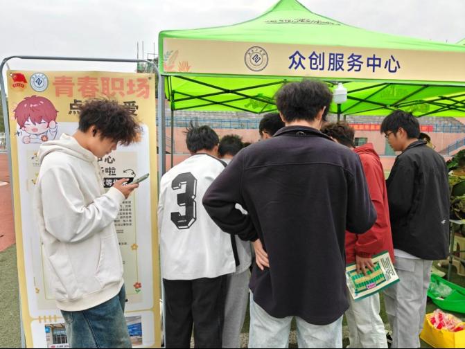 2025年10月28日,由校团委、创新创业教育中心等部门联合主办的“青春职场,点燃热爱”主题招新活动在北区田径场顺利举行。大学生创业园九个创业项目集体亮相,通过项目展示、互动体验与打卡集章相结合的方式,吸引了大量新生驻足关注并积极参与。