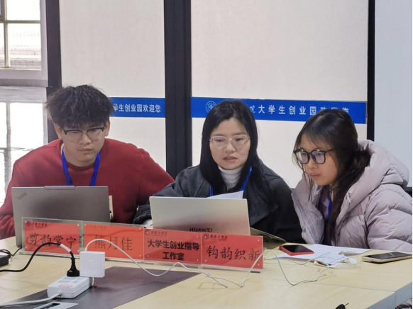 活动中,熊月佳导师围绕大赛赛程、评审维度、评分细则及注意事项进行系统解读,明确材料提交规范,帮助团队准确把握赛事方向,有效规避常见误区。在项目计划书指导环节,她从项目创新性、可行性、市场前景、商业模式等维度逐一剖析各团队项目,指出问题与不足,并提出针对性、可落地的改进方案,助力团队进一步明确项目定位。