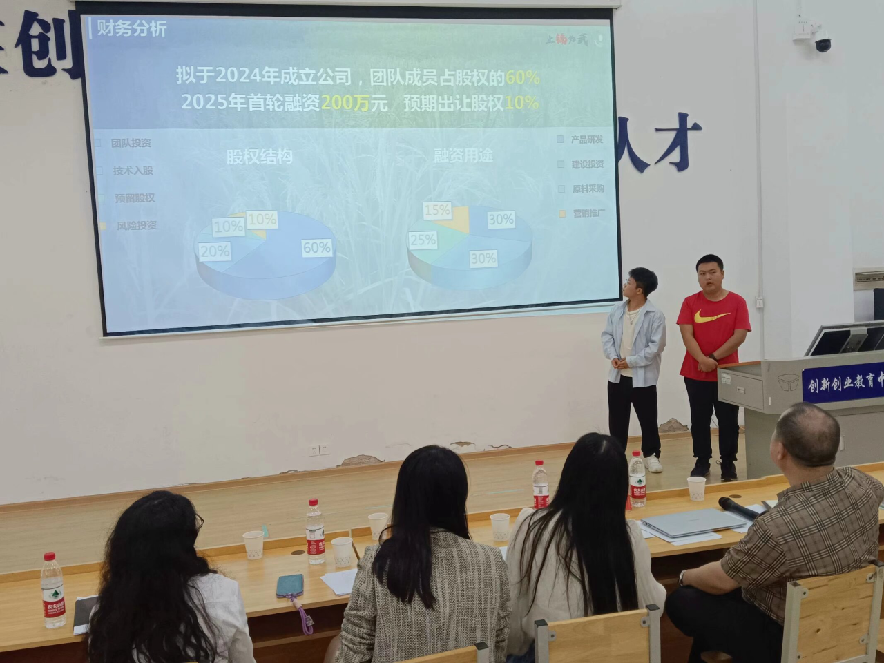 本次培训包含专家讲授和项目辅导两个环节。在专家讲授环节,安光吉老师针对如何撰写项目计划书中股权分配、融资计划、财务分析等部分作了详细讲解,同学们深受启发。项目辅导采用“团队路演+专家辅导”的形式进行,十三个项目团队参与了本次培训。在一对一项目辅导过程中,安光吉老师不仅从项目背景、市场分析、核心痛点、解决方案、教育维度等方面为参赛项目提供了指导,而且结合团队项目的实际情况重点对团队的股权结构、财务分析等模块给出了专业的指导性修改建议。