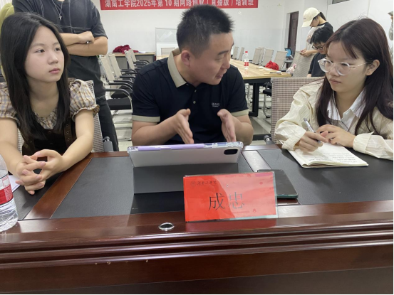 培训分为上午、下午两场,成忠老师针对不同学院专业特色,深入剖析每个项目并进行一对一辅导。对参赛项目存在的技术优势展示不明显、学生实践参与度体现不足、应用场景缺乏具象化及项目成果量化缺失等问题给出了专业建议和切实可行的改进方向,让项目优化路径一目了然。