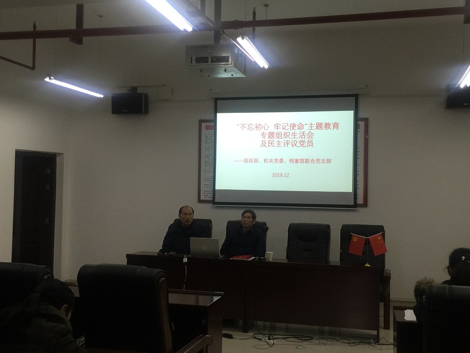 12月20日上午,组织部(党校)、机关党委、档案馆联合党支部在教学大楼509室召开“不忘初心、牢记使命”专题组织生活会及民主评议党员,党支部书记刘金春主持会议,联系支部的机关党委书记李春生出席会议,支部全体党员参会。