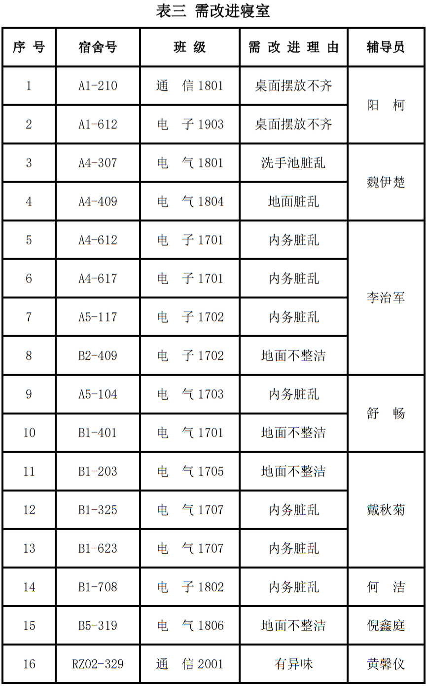 2021年上半年文明宿舍建设活动第八周,我院“文明宿舍创建活动”工作组本着“公平、公正、公开”的原则,对我院全部宿舍进行了彻底检查。现将检查结果公布如下: