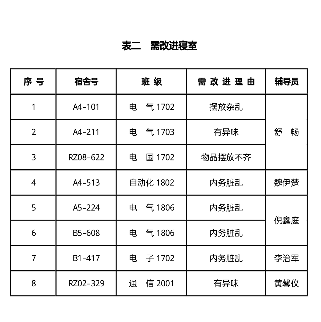 电气与信息工程学院文明宿舍建设活动第十二周检查结果