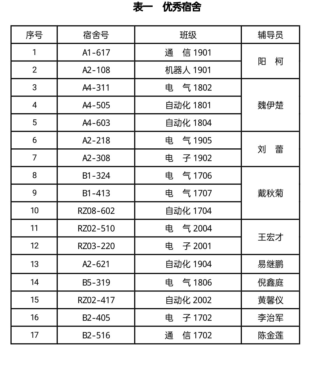 “文明宿舍创建活动”工作组本着“公平、公正、公开”的原则,对我院全部宿舍进行了彻底检查。现将检查结果公布如下:
