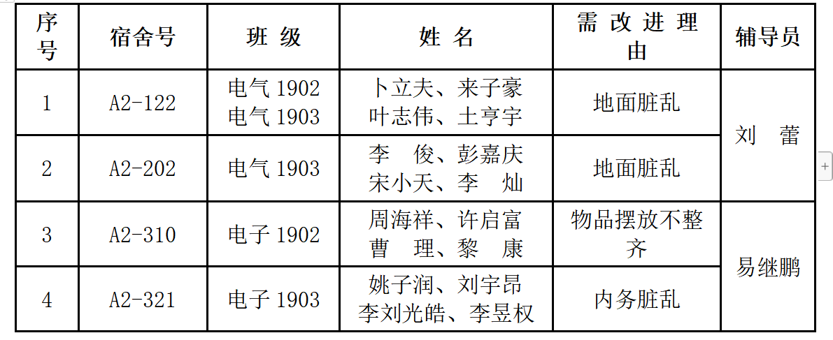 2021年下半年文明宿舍建设活动第十七周,我院“文明宿舍创建活动”工作组本着“公平、公正、公开”的原则,对我院全部宿舍进行了彻底检查。现将检查结果公布如下: