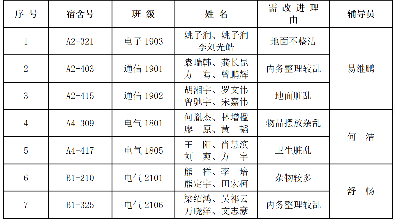 需改进寝室