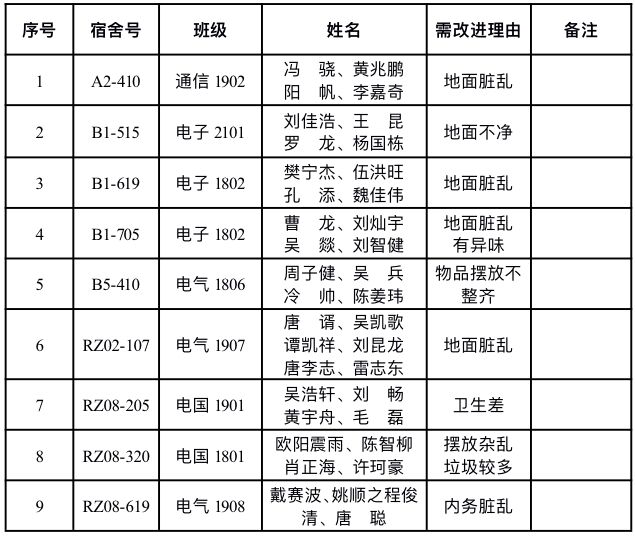 需改进寝室