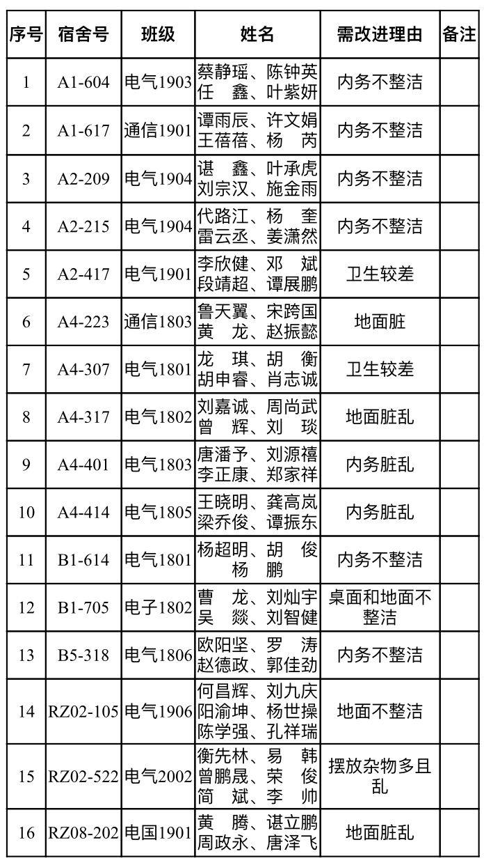 需改进寝室