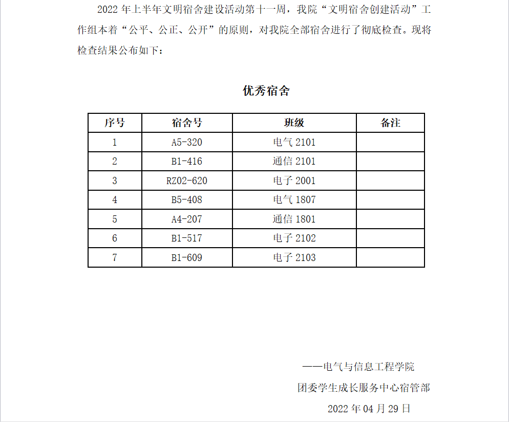 2022年上半年文明寝室创建第十一周优秀寝室