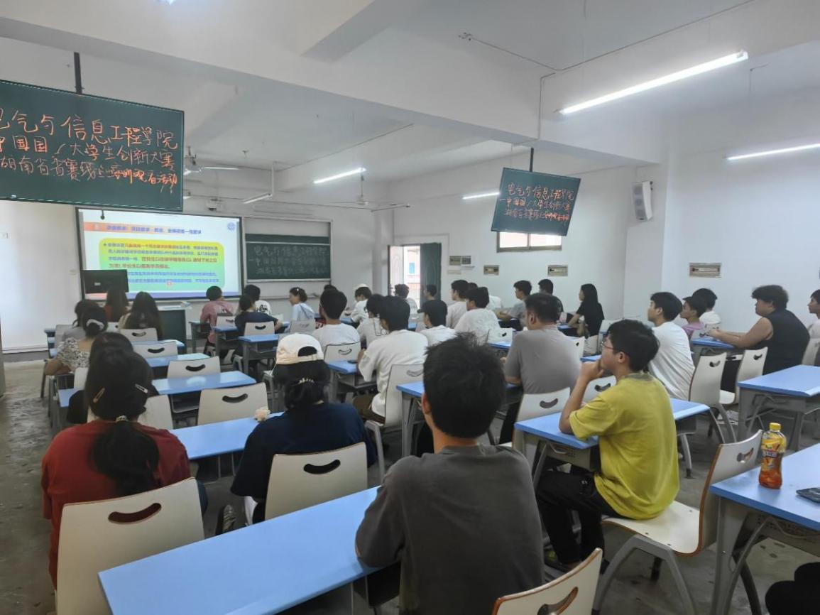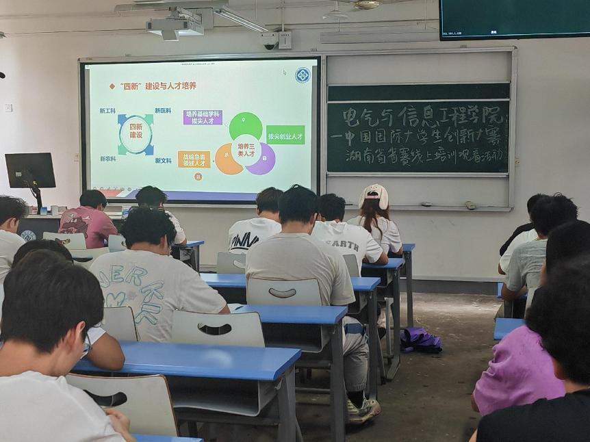 为贯彻落实党的二十大和二十届二中、三中全会精神,落实习近平总书记给中国国际大学生创新大赛参赛学生代表的重要回信和给大赛“青年红色筑梦之旅”大学生重要回信精神,电气与信息工程学院于6月21日至22日,组织师生在电信楼3501开展2025年中国国际大学生创新大赛湖南省赛培训活动。